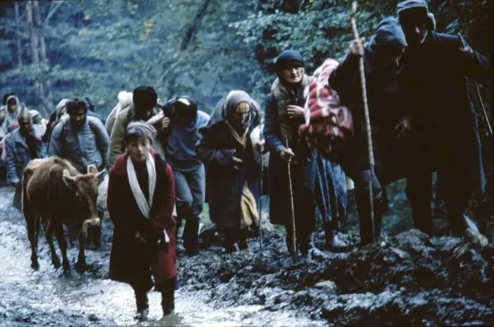 Yerlerinden edilen, sürülen Gürcüler Göç Yolunda.